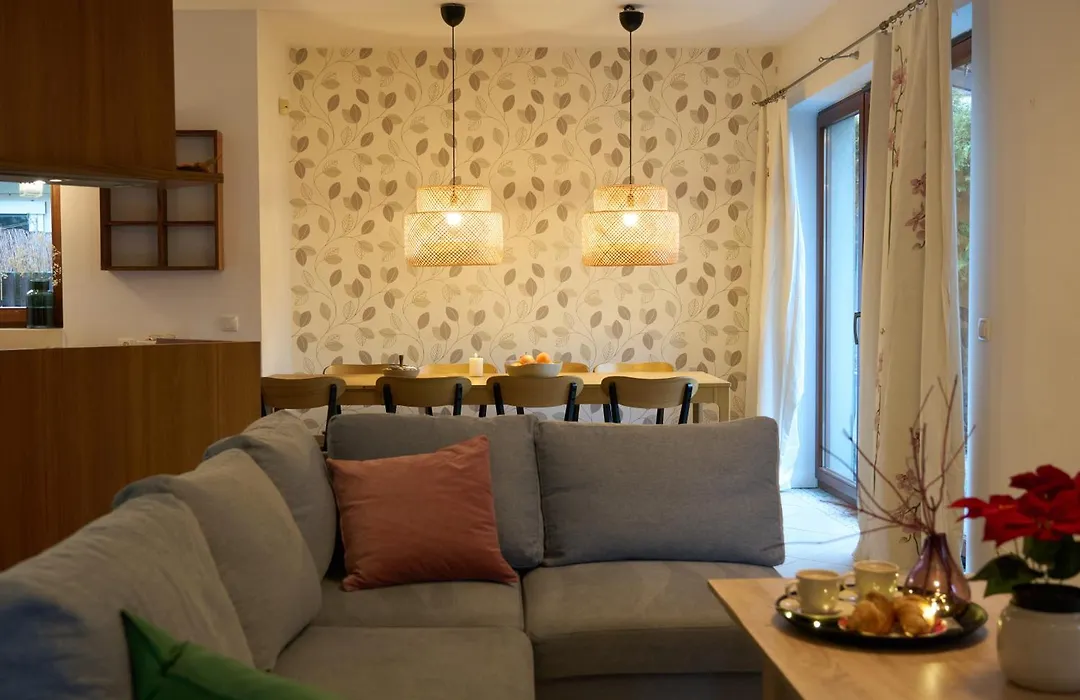Gäste können ihre Mahlzeiten in einer Küchenzeile zubereiten sowie in einem Essbereich im Freien speisen. Es gibt auch einen Herd und einen Geschirrspüler in der Küche. Das Restaurant Trattoria W Trakcie liegt circa 8 Minuten von der Unterkunft entfernt. Die nächstgelegene Bushaltestelle Jeziorowa 02 befindet sich gleich neben dieser Unterkunft in Warschau.